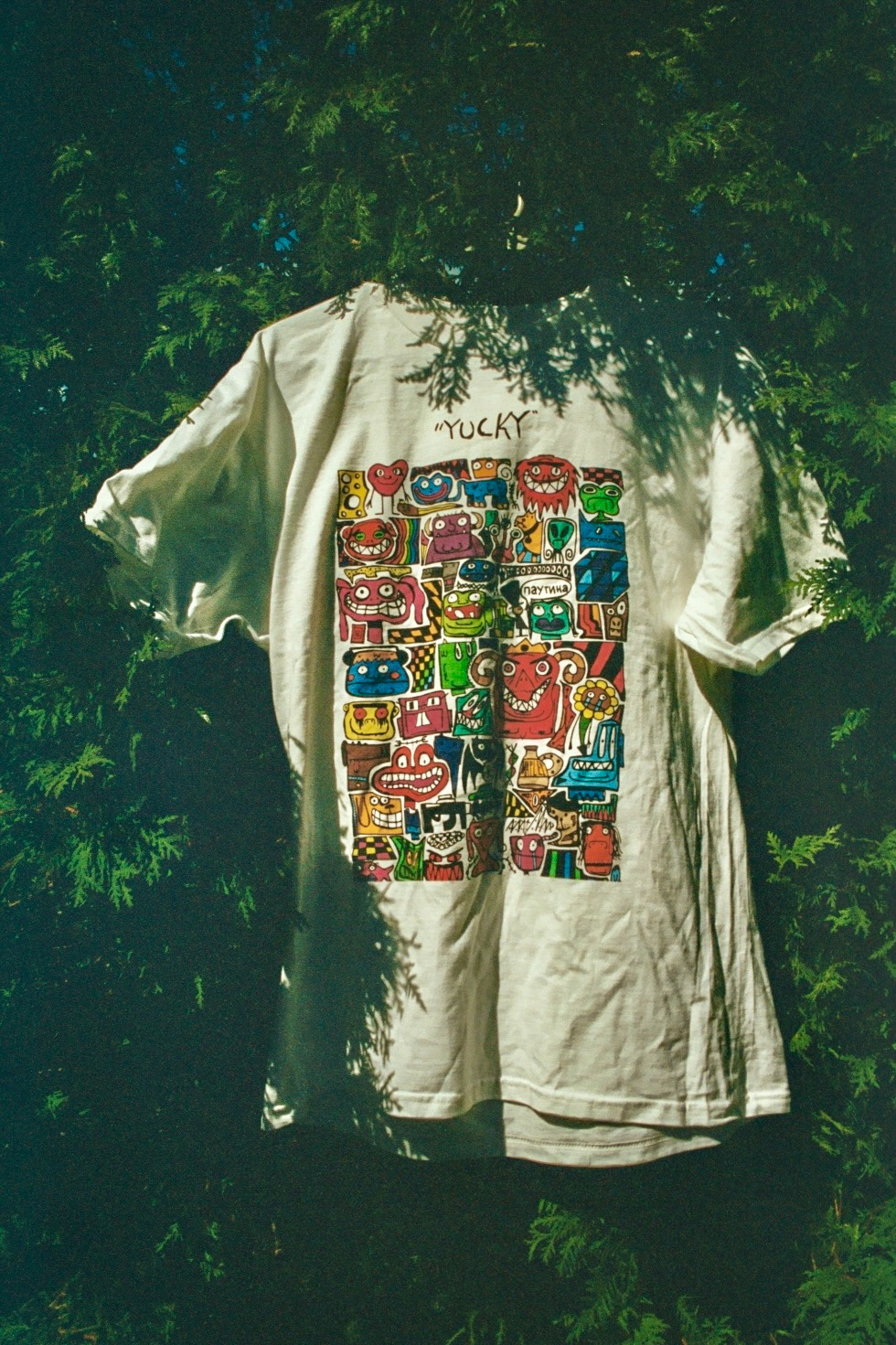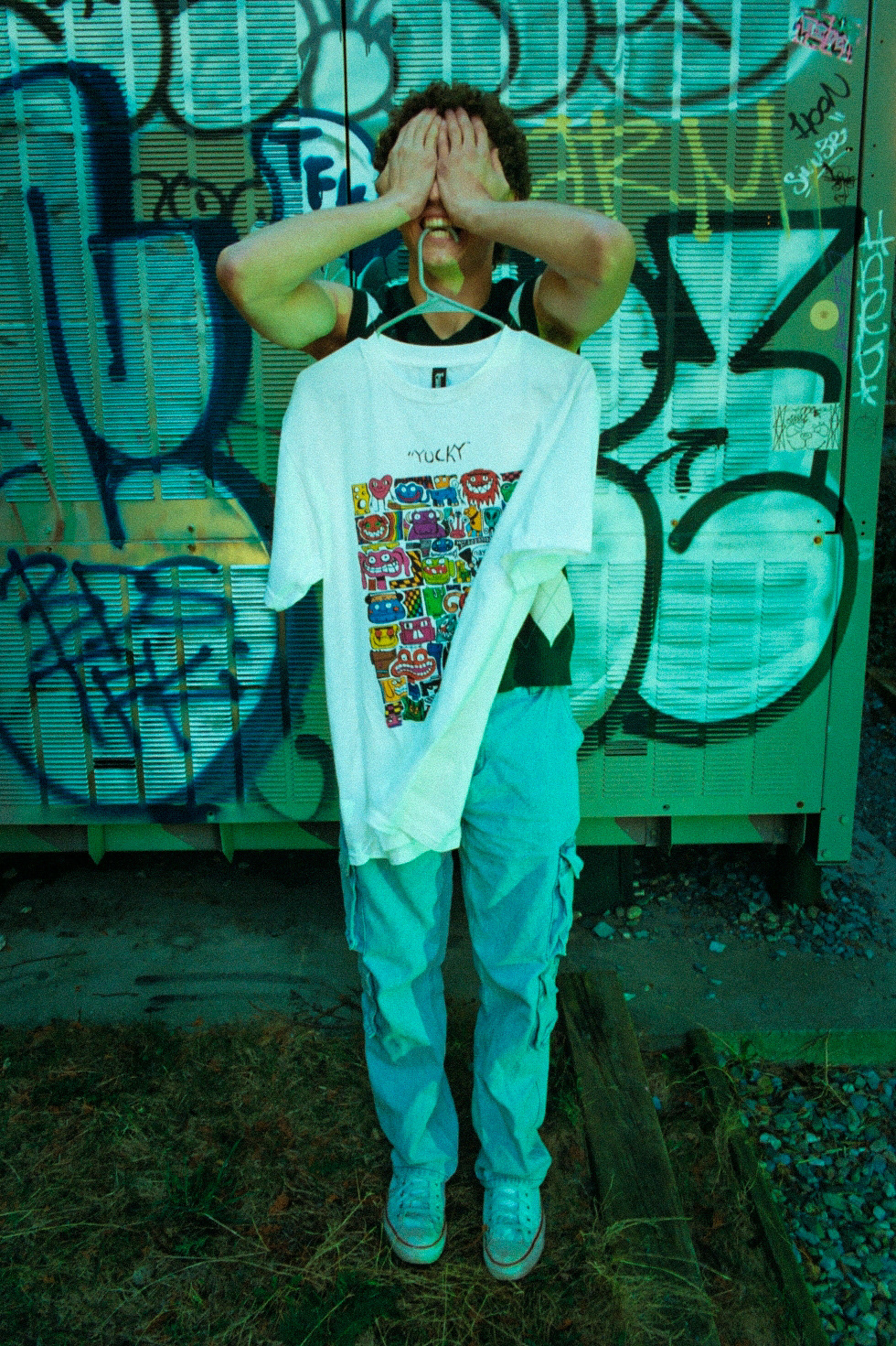 "YUCKY" was a drawing I made, which I then printed onto a t-shirt, which I then did a photoshoot with. You can buy the YUCKY shirt on my teepublic store.